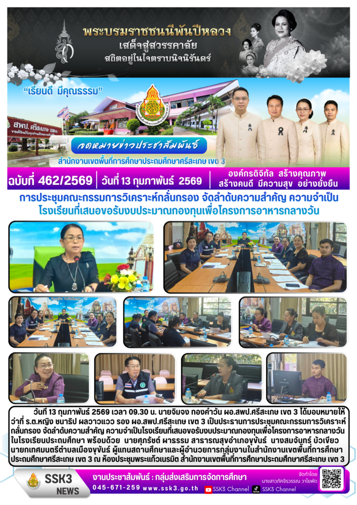 การประชุมคณะกรรมการวิเคราะห์กลั่นกรอง จัดลำดับความสำคัญ ความจำเป็นโรงเรียนที่เสนอขอรับงบประมาณกองทุนเพื่อโครงการอาหารกลางวัน กุมภาพันธ์ 13, 2026 Last updated : กุมภาพันธ์ 13, 2026 nitad จำนวนคนดู : 10