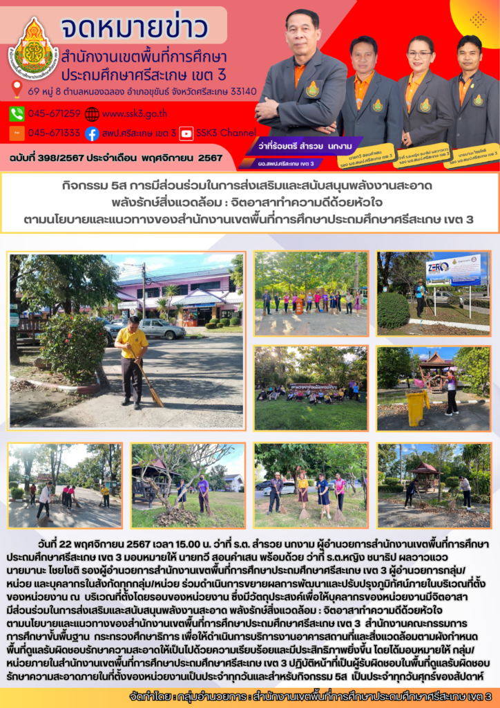 กิจกรรม 5ส การมีส่วนร่วมในการส่งเสริมและสนับสนุนพลังงานสะอาด พลังรักษ์สิ่งแวดล้อม : จิตอาสาทำความดีด้วยหัวใจ ตามนโยบายและแนวทางของสำนักงานเขตพื้นที่การศึกษาประถมศึกษาศรีสะเกษ เขต 3 พฤศจิกายน 25, 2024 Last updated : พฤศจิกายน 25, 2024 Chananthita จำนวนคนดู : 66