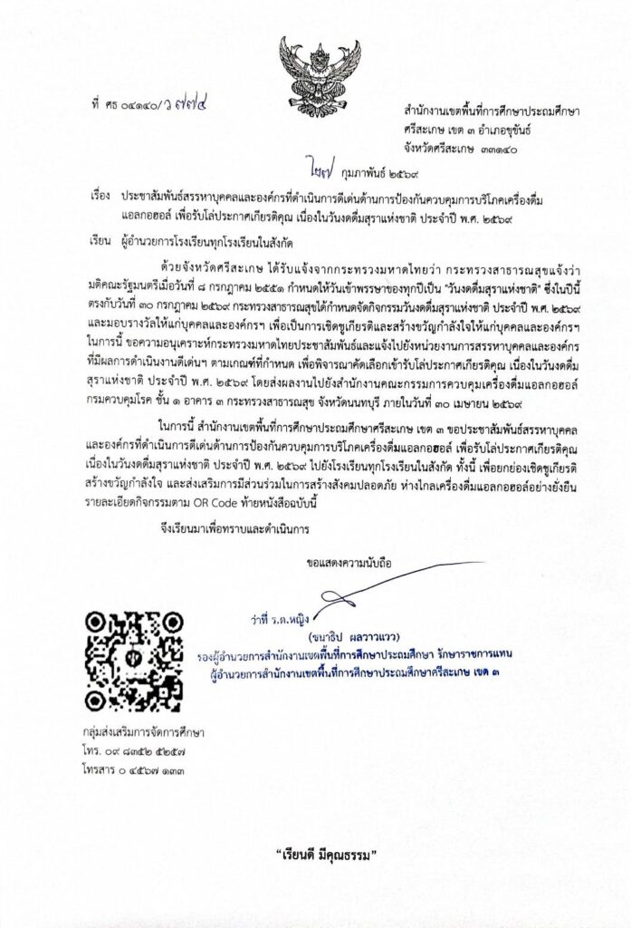 ประชาสัมพันธ์สรรหาบุคคลและองค์กรที่ดำเนินการดีเด่นด้านการป้องกันควบคุมการบริโภคเครื่องดื่มแอลกอฮอล์ เพื่อรับโล่ประกาศเกียรติคุณ เนื่องในวันงดดื่มสุราแห่งชาติ ประจำปี พ.ศ. 2569 มีนาคม 2, 2026 Last updated : มีนาคม 2, 2026 nitad จำนวนคนดู : 6