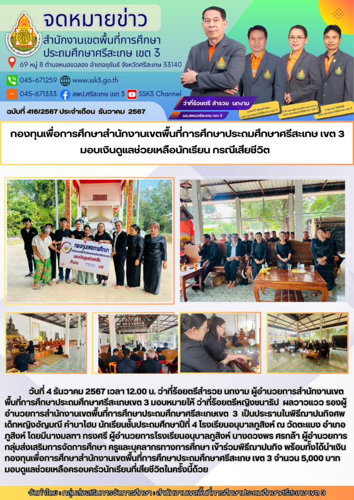 มอบเงินดูแลช่วยเหลือนักเรียน กรณีเสียชีวิต ธันวาคม 12, 2024 Last updated : ธันวาคม 12, 2024 Chananthita จำนวนคนดู : 350