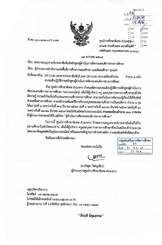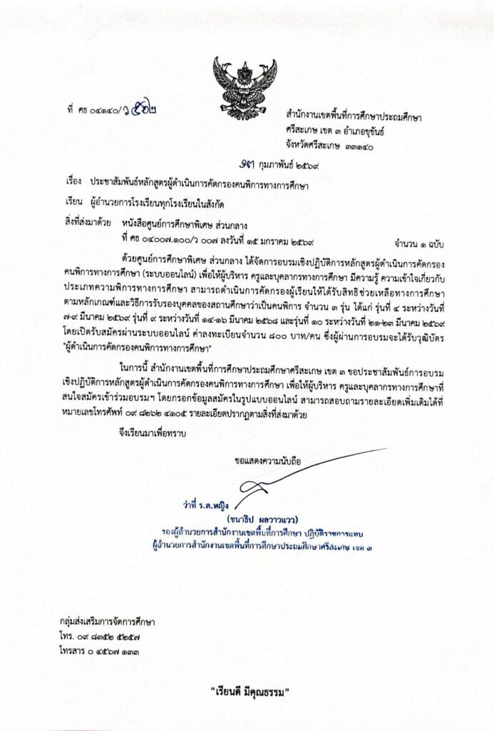 ว562 ประชาสัมพันธ์หลักสูตรผู้ดำเนินการคัดกรองคนพิการทางการศึกษา กุมภาพันธ์ 14, 2026 Last updated : กุมภาพันธ์ 14, 2026 nitad จำนวนคนดู : 10