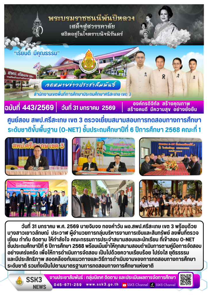 ศูนย์สอบ สพป.ศรีสะเกษ เขต ๓ ตรวจเยี่ยมสนามสอบการทดสอบทางการศึกษาระดับชาติขั้นพื้นฐาน (O-NET ชั้นประถมศึกษาปีที่ 6 ปีการศึกษา 2568 คณะที่ 1 กุมภาพันธ์ 12, 2026 Last updated : กุมภาพันธ์ 12, 2026 nitad จำนวนคนดู : 10