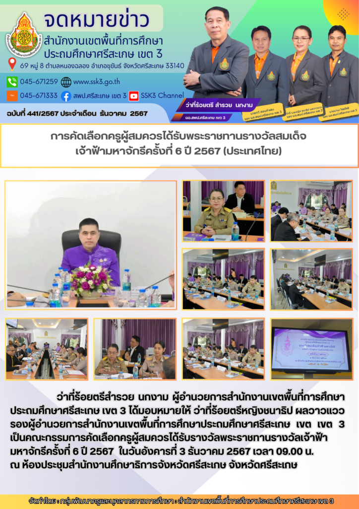 การคัดเลือกครูผู้สมควรได้รับพระราชทานรางวัลสมเด็จเจ้าฟ้ามหาจักรีครั้งที่ 6 ปี 2567 (ประเทศไทย) ธันวาคม 12, 2024 Last updated : ธันวาคม 12, 2024 Chananthita จำนวนคนดู : 16