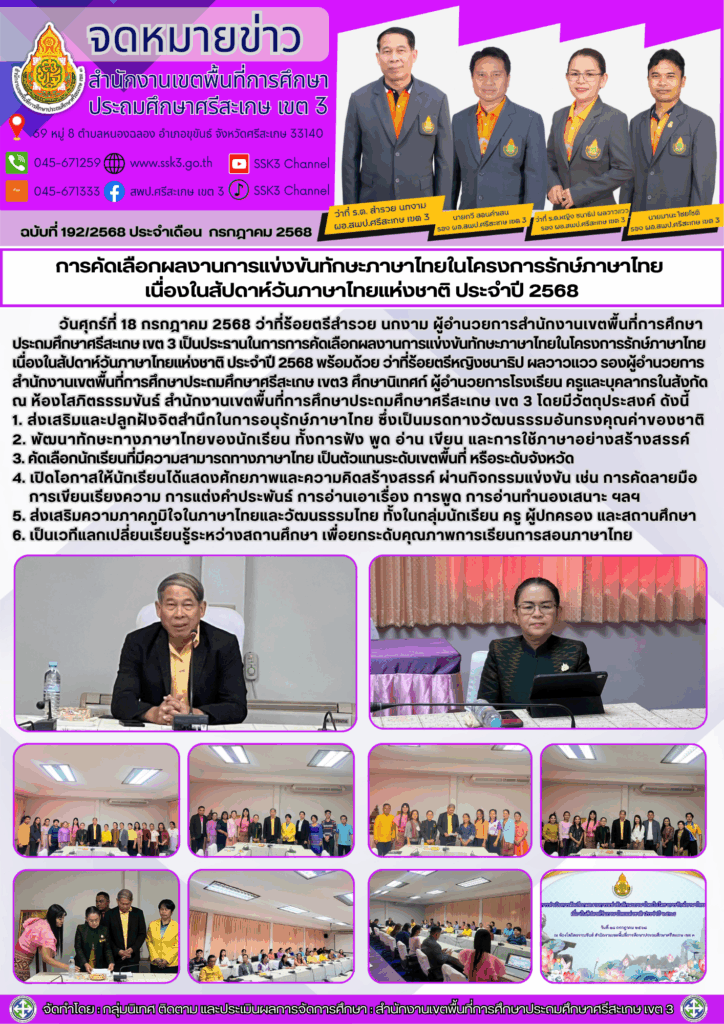 การคัดเลือกผลงานการแข่งขันทักษะภาษาไทยในโครงการรักษ์ภาษาไทย เนื่องในสัปดาห์วันภาษาไทยแห่งชาติ ประจำปี 2568 กรกฎาคม 21, 2025 Last updated : กรกฎาคม 21, 2025 nitad จำนวนคนดู : 126