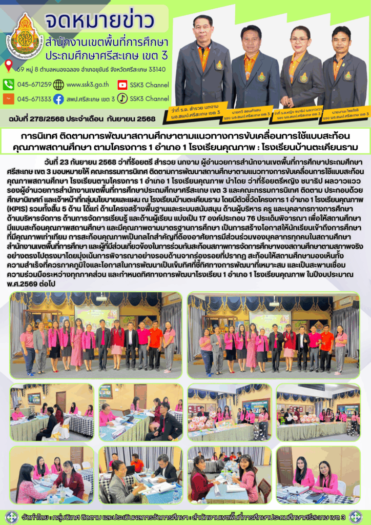 การนิเทศ ติดตามการพัฒนาสถานศึกษาตามแนวทางการขับเคลื่อนการใช้แบบสะท้อนคุณภาพสถานศึกษา ตามโครงการ 1 อำเภอ 1 โรงเรียนคุณภาพ : โรงเรียนบ้านตะเคียนราม ตุลาคม 1, 2025 Last updated : ตุลาคม 1, 2025 nitad จำนวนคนดู : 20