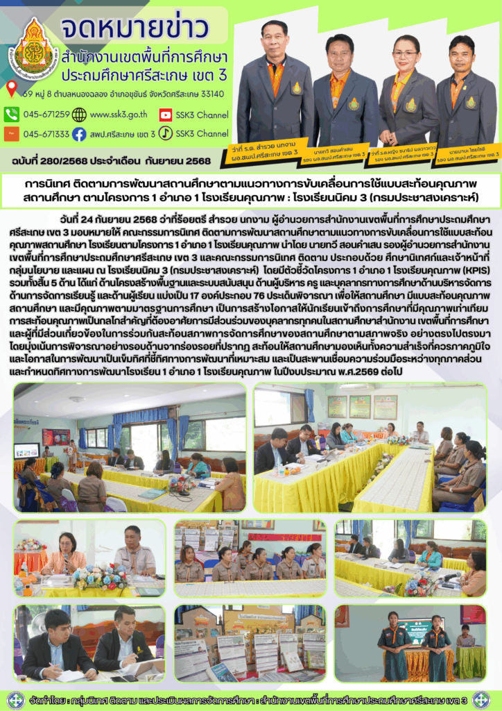 การนิเทศ ติดตามการพัฒนาสถานศึกษาตามแนวทางการขับเคลื่อนการใช้แบบสะท้อนคุณภาพสถานศึกษา ตามโครงการ 1 อำเภอ 1 โรงเรียนคุณภาพ : โรงเรียนนิคม 3 (กรมประชาสงเคราะห์) ตุลาคม 1, 2025 Last updated : ตุลาคม 1, 2025 nitad จำนวนคนดู : 31