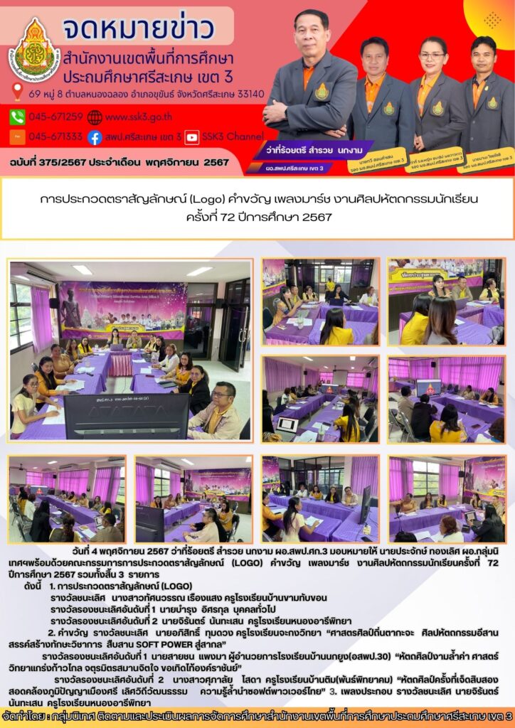 การประกวดตราสัญลักษณ์ (Logo) คำขวัญ เพลงมาร์ช งานศิลปหัตถกรรมนักเรียน ครั้งที่ 72 ปีการศึกษา 2567 พฤศจิกายน 25, 2024 Last updated : พฤศจิกายน 25, 2024 Chananthita จำนวนคนดู : 165
