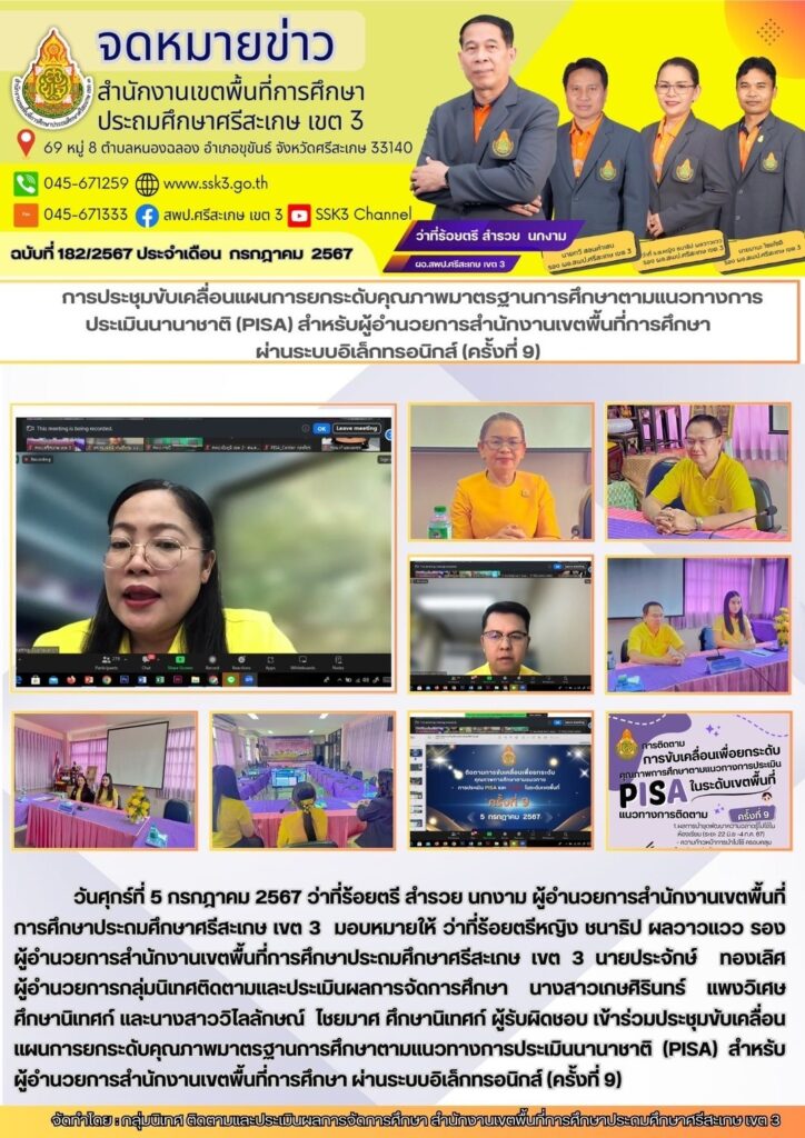 การประชุมขับเคลื่อนแผนการยกระดับคุณภาพมาตรฐานการศึกษาตามแนวทางการประเมินนานาชาติ (PISA) สำหรับผู้อำนวยการสำนักงานเขตพื้นที่การศึกษา ผ่านระบบอิเล็กทรอนิกส์ (ครั้งที่ 9)