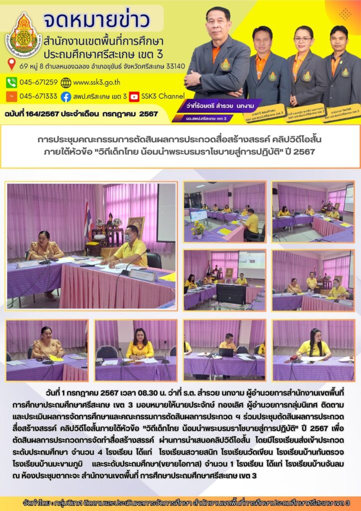 การประชุมคณะกรรมการตัดสินผลการประกวดสื่อสร้างสรรค์ คลิปวิดีโอสั้น ภายใต้หัวข้อ "วิถีเด็กไทย น้อมนำพระบรมราโชบายสู่การปฏิบัติ" ปี 2567 กรกฎาคม 2, 2024 Last updated : กรกฎาคม 2, 2024 Chananthita จำนวนคนดู : 127