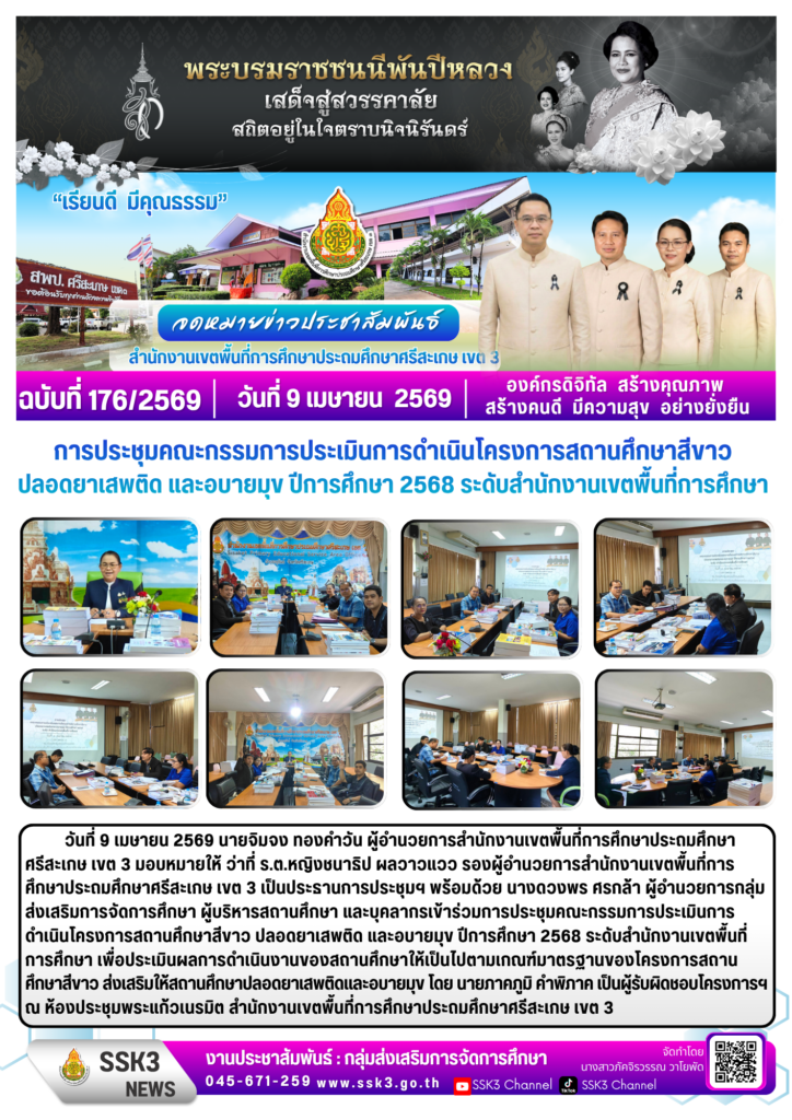การประชุมคณะกรรมการประเมินการดำเนินโครงการสถานศึกษาสีขาว ปลอดยาเสพติด และอบายมุข ปีการศึกษา 2568 ระดับสำนักงานเขตพื้นที่การศึกษา