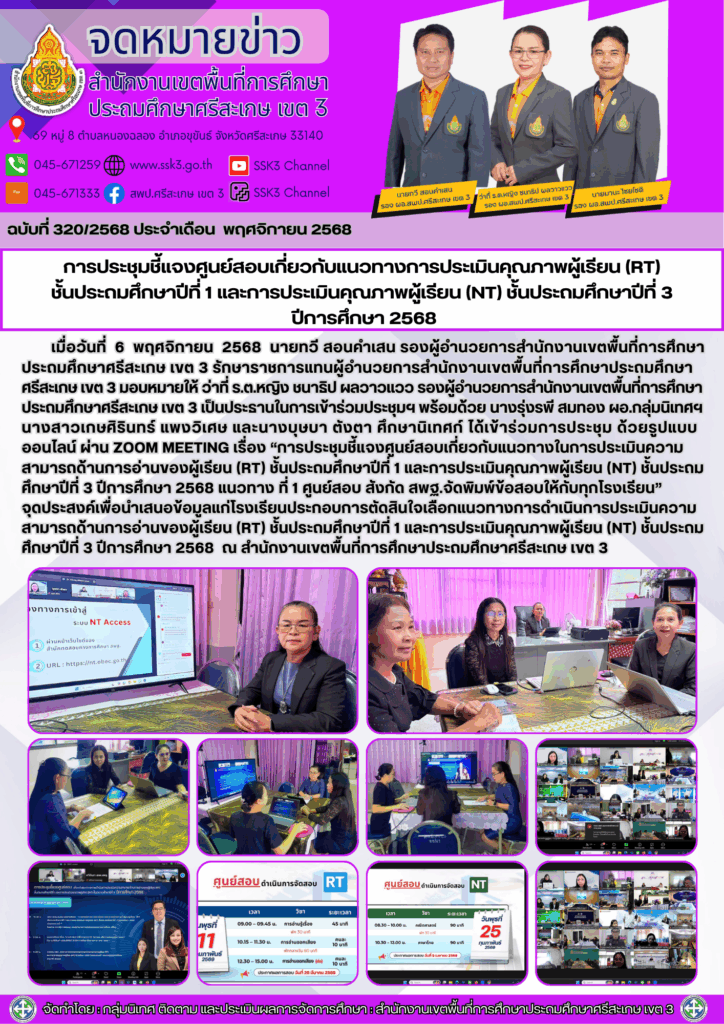 การประชุมชี้แจงศูนย์สอบเกี่ยวกับแนวทางการประเมินคุณภาพผู้เรียน (RT) ชั้นประถมศึกษาปีที่ 1 และการประเมินคุณภาพผู้เรียน (NT) ชั้นประถมศึกษาปีที่ 3 ปีการศึกษา 2568 พฤศจิกายน 10, 2025 Last updated : พฤศจิกายน 10, 2025 nitad จำนวนคนดู : 5