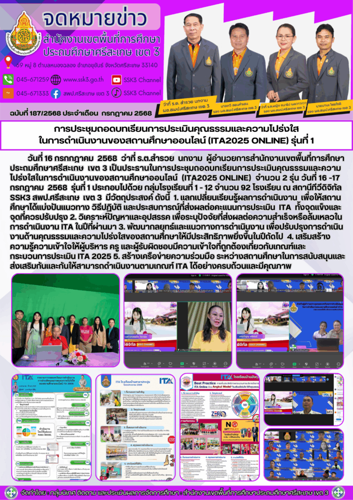 การประชุมถอดบทเรียนการประเมินคุณธรรมและความโปร่งใสในการดำเนินงานของสถานศึกษาออนไลน์ (ITA2025 Online) รุ่นที่ 1 กรกฎาคม 18, 2025 Last updated : กรกฎาคม 18, 2025 nitad จำนวนคนดู : 28