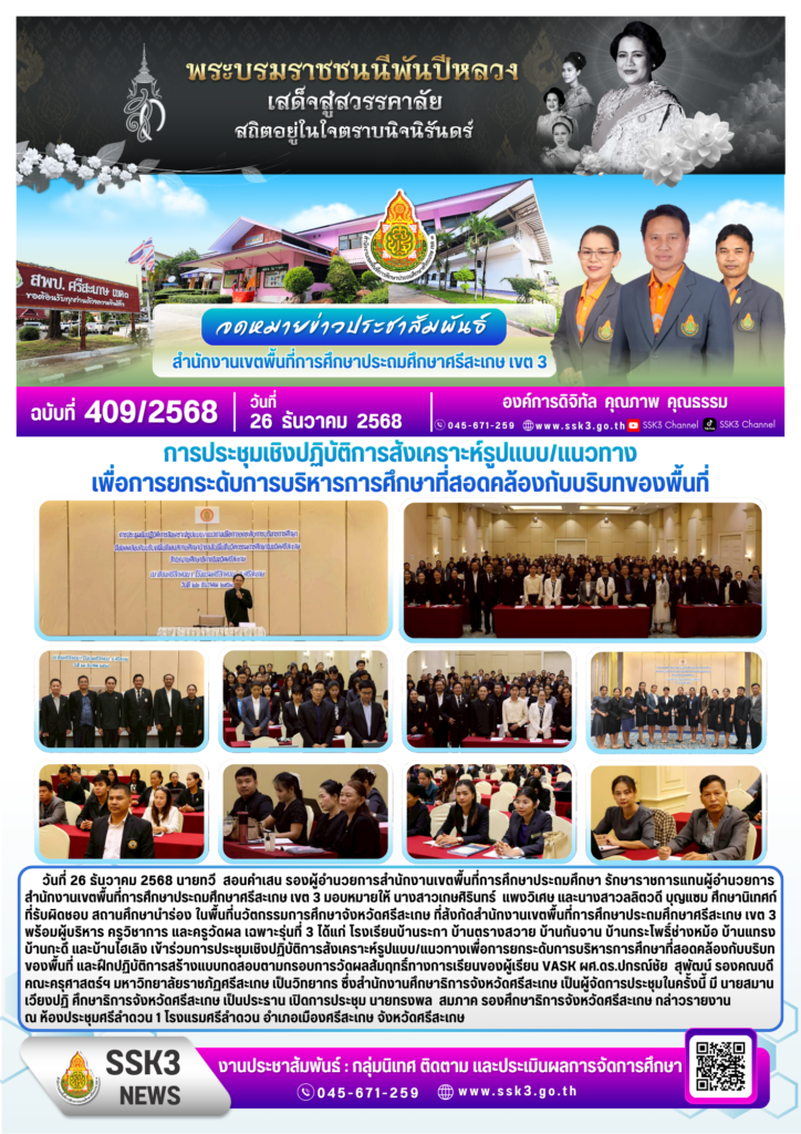 การประชุมเชิงปฏิบัติการสังเคราะห์รูปแบบ/แนวทางเพื่อการยกระดับการบริหารการศึกษาที่สอดคล้องกับบริบทของพื้นที่ ธันวาคม 29, 2025 Last updated : ธันวาคม 29, 2025 nitad จำนวนคนดู : 17