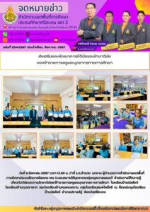 วันที่ 13 สิงหาคม 2567 ว่าที่ ร.ต.สำรวย นกงาม ผอ.สพป.ศรีสะเกษ เขต 3 มอบหมาย นายทวี สอนคำเสน รอง ผอ.สพป.ศรีสะเกษ เขต 3 ว่าที่ รต. หญิง ชนาธิป ผลวาวแวว รอง ผอ.สพป.ศรีสะเกษ เขต 3 พร้อมด้วยคณะกรรมการประเมินความพร้อมโรงเรียนคุณภาพ ลงพื้นที่ประเมินโรงเรียนคุณภาพในสังกัดทั้ง 4 โรงเรียน 1)โรงเรียนนิคม 3(กรมประชาสงเคราะห์) อ.ขุขันธ์ 2) โรงเรียนบ้านเหล็ก อ.ปรางค์กู่ 3) โรงเรียนบ้านตะเคียนราม อ.ภูสิงห์ 4) โรงเรียนอนุบาลไพรบึง อ.ไพรบึง ตามนโยบายรัฐมนตรีกระทรวงศึกษาธิการ (พล.ต.อ.เพิ่มพูล ชิดชอบ) ลดภาระนักเรียนและผู้ปกครองผ่านโครงการ "1 อำเภอ 1 โรงเรียนคุณภาพ" ซึ่ง สพฐ.ได้กำหนดให้เป็นนโยบายเร่งด่วน (Quick Win) มีแนวทางการพัมนา 5 ด้าน ได้แก่ 1) ด้านโครงสร้างพื้นฐานและระบบสนับสนุนนักเรียน 2) ด้านผู้บริหารข้าราชการครูและบุคลากรทางการศึกษา 3) ด้านการบริหารจัดการ 4) ด้านการจัดการเรียนรู้ 5) ด้านผู้เรียน เพื่อเพิ่มโอกาสให้ผู้เรียนสามารถเข้าถึงการจัดการศึกษาอย่างทั่วถึงและมีคุณภาพสอดคล้องกับนโยบายศึกษาธิการ "เรียนดี มีความสุข"