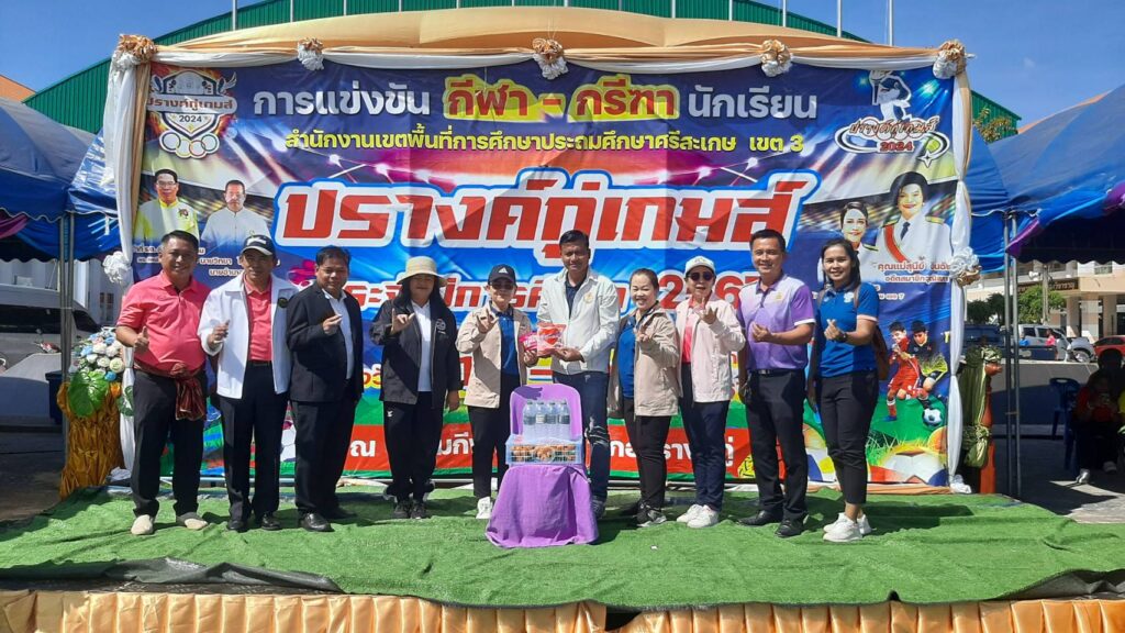 เมื่อวันที่ 19-21 พฤศจิกายน 2567 ว่าที่ ร.ต. สำรวย นกงาม ผู้อำนวยการสำนักงานเขตพื้นที่การศึกษาประถมศึกษาศรีสะเกษ เขต 3 มอบหมายให้ นายทวี สอนคำเสน พร้อมด้วย ว่าที่ ร.ต.หญิงชนาธิป ผลวาวแวว และนายมานะ ไชยโชติ รองผู้อำนวยการสำนักงานเขตพื้นที่การศึกษาประถมศึกษาศรีสะเกษ เขต 3 และคณะกรรมการออกเยี่ยมสนามแข่งขันกีฬานักเรียน ประจำปีการศึกษา 2567 ออกเยี่ยมการแข่งขันกีฬานักเรียน ในระหว่างวันที่ 19-21 พฤศจิกายน 2567 ตามสนามแข่งขันต่างๆในพื้นที่อำเภอปรางค์กู่ ได้แก่ สนามที่ว่าการอำเภอปรางค์กู่ สกต.ปรางค์กู่ โรงเรียนปรางค์กู่ สภ.ปรางค์กู่ โรงเรียนบ้านดอนหลี่ โรงเรียนบ้านสมอ โรงเรียนอนุบาลปรางค์กู่ โรงเรียนบ้านบัลลังก์ โรงเรียนบ้านกอกหวาน และสนามกีฬาองค์การบริหารส่วนตำบลโพธิ์ศรี ทั้งนี้ ได้มอบน้ำดื่ม ผลไม้ และขนมให้กับสนามที่จัดการแข่งขันเพื่อใช้ประโยชน์ในการแข่งขันต่อไป