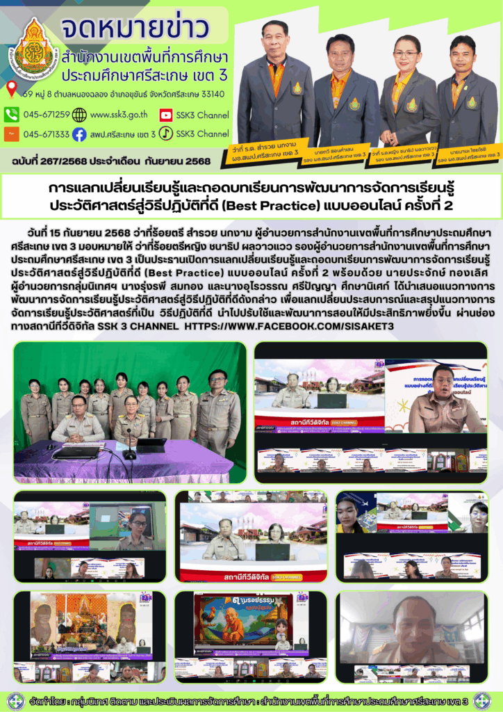 การแลกเปลี่ยนเรียนรู้และถอดบทเรียนการพัฒนาการจัดการเรียนรู้ประวัติศาสตร์สู่วิธีปฏิบัติที่ดี (Best Practice) แบบออนไลน์ ครั้งที่ 2 กันยายน 24, 2025 Last updated : กันยายน 24, 2025 nitad จำนวนคนดู : 20
