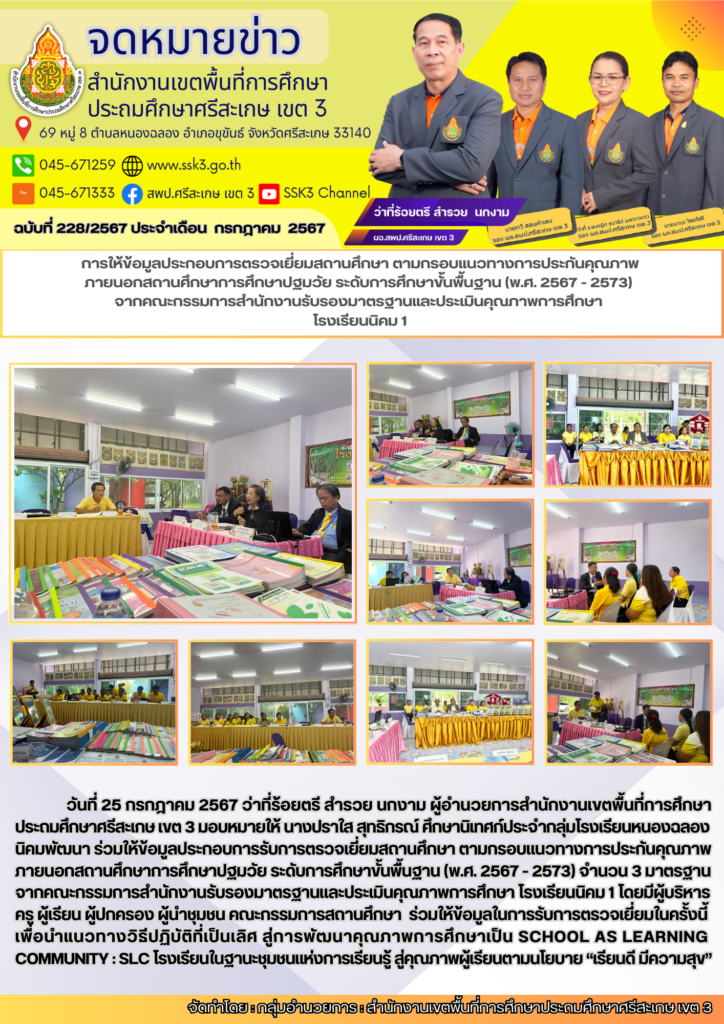 การให้ข้อมูลประกอบการตรวจเยี่ยมสถานศึกษา ตามกรอบแนวทางการประกันคุณภาพภายนอกสถานศึกษาการศึกษาปฐมวัย ระดับการศึกษาขั้นพื้นฐาน (พ.ศ. 2567 - 2573) จากคณะกรรมการสำนักงานรับรองมาตรฐานและประเมินคุณภาพการศึกษา โรงเรียนนิคม 1 สิงหาคม 1, 2024 Last updated : สิงหาคม 1, 2024 Chananthita จำนวนคนดู : 148