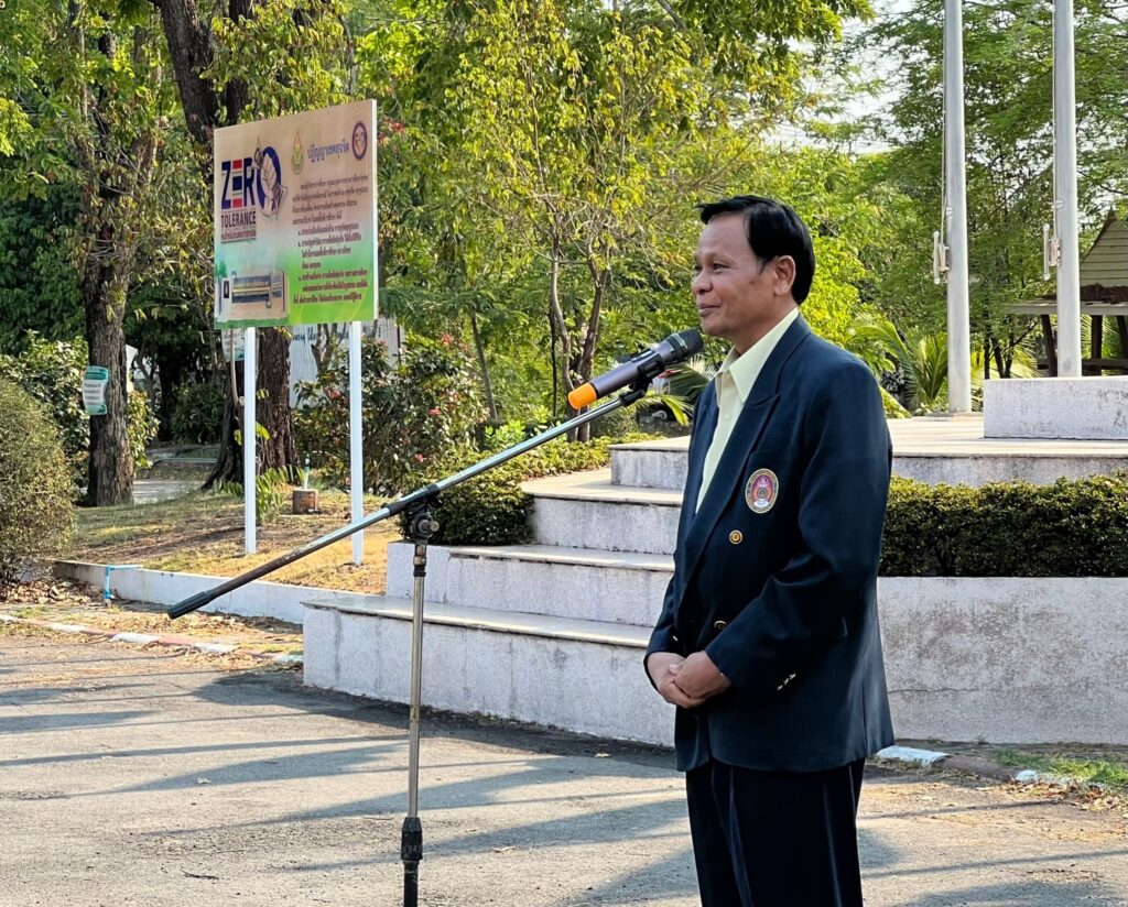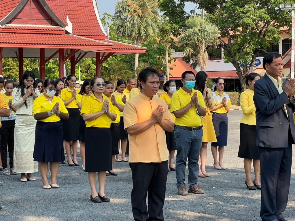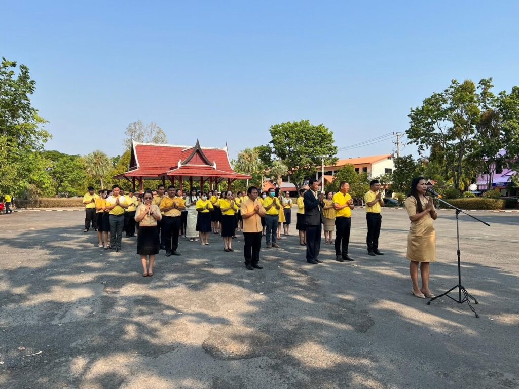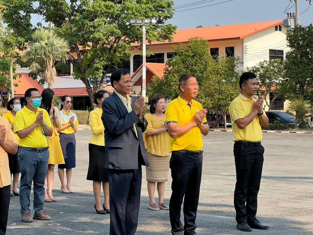 วันที่ 29 เมษายน 2567 เวลา 08.30 น. ว่าที่ ร.ต. สำรวย นกงาม ผู้อำนวยการสำนักงานเขตพื้นที่การศึกษาประถมศึกษาศรีสะเกษ เขต 3 พร้อมด้วย นายทวี สอนคำเสน, ว่าที่ ร.ต.หญิงชนาธิป ผลวาวแวว และนายมานะ ไชยโชติ รองผู้อำนวยการสำนักงานเขตพื้นที่การศึกษาประถมศึกษาศรีสะเกษ เขต 3, ผู้อำนวยการกลุ่ม/หน่วย ศึกษานิเทศก์ และบุคลากรในสังกัด ได้ร่วมกิจกรรมเข้าแถวเคารพธงชาติ และสวดมนต์ไหว้พระ กล่าวคำปฏิญาณเขตสุจริต และให้โอวาทคำแนะนำ เพื่อให้ทุกคนร่วมตั้งใจปฏิบัติหน้าที่ ตามนโยบายของสำนักงานคณะกรรมการการศึกษาขั้นพื้นฐาน กระทรวงศึกษาธิการ ปลูกฝังความรักในสถาบันหลักของชาติ พร้อมทั้งกล่าวต้อนรับและแสดงความยินดีกับ รศ.ดร.อุดมพันธุ์ พิชญ์ประเสริฐ ประธานอนุกรรมการ อ.ก.ค.ศ. เขตพื้นที่การศึกษาประถมศึกษาศรีสะเกษ เขต 3 เนื่องในโอกาสเข้ารับตำแหน่งประธานอนุกรรมการ อ.ก.ค.ศ.