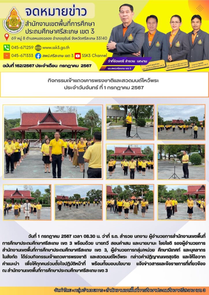 กิจกรรมเข้าแถวเคารพธงชาติและสวดมนต์ไหว้พระ ประจำวันจันทร์ ที่ 1 กรกฎาคม 2567