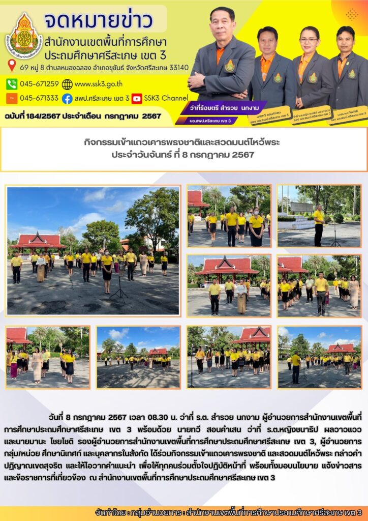 กิจกรรมเข้าแถวเคารพธงชาติและสวดมนต์ไหว้พระ ประจำวันจันทร์ ที่ 8 กรกฎาคม 2567 กรกฎาคม 9, 2024 Last updated : กรกฎาคม 9, 2024 Chananthita จำนวนคนดู : 31