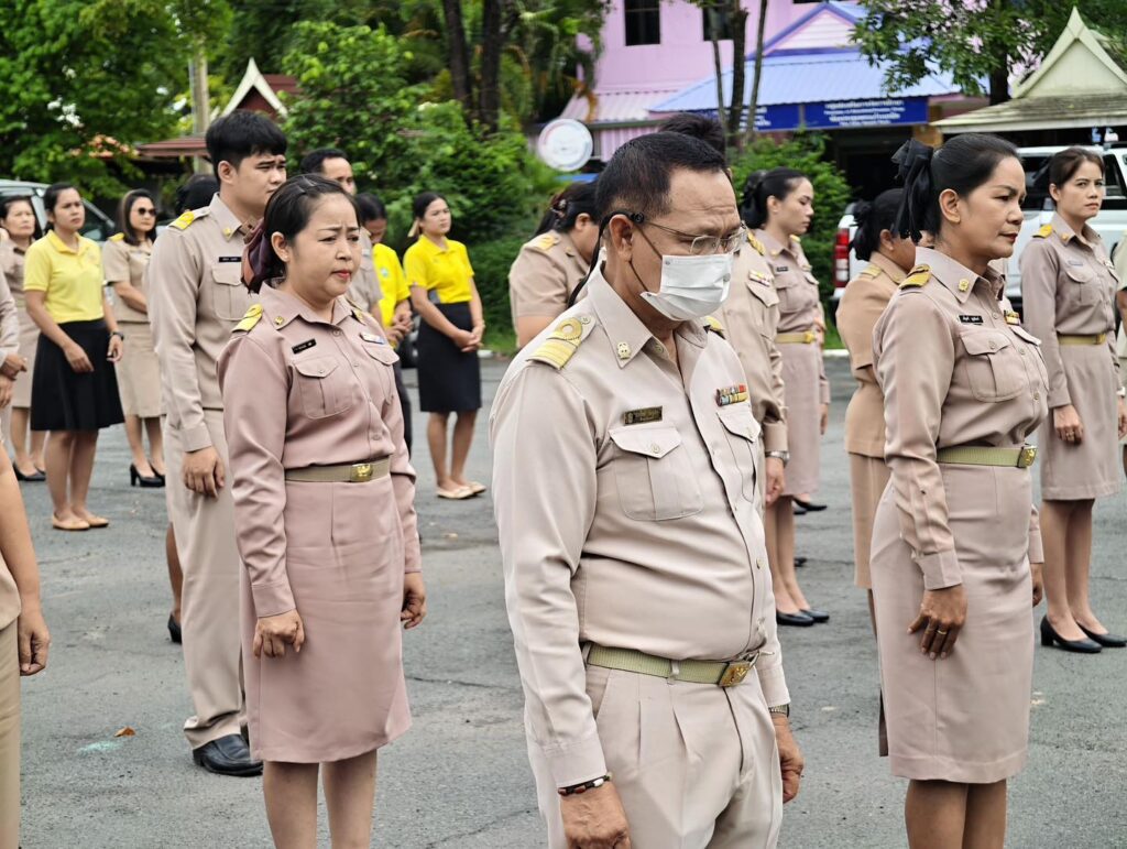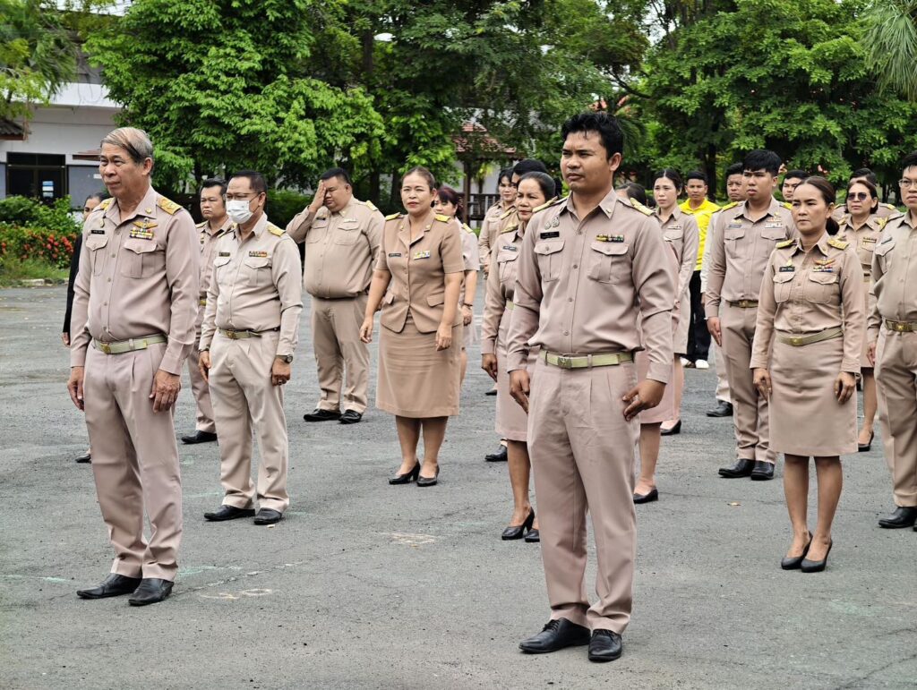 วันที่ 23 มิถุนายน 2568 เวลา 08.15 น. ว่าที่ ร.ต. สำรวย นกงาม ผู้อำนวยการสำนักงานเขตพื้นที่การศึกษาประถมศึกษาศรีสะเกษ เขต 3 พร้อมด้วย นายทวี สอนคำเสน ว่าที่ ร.ต.หญิง ชนาธิป ผลวาวแวว นายมานะ ไชยโชติ รองผู้อำนวยการสำนักงานเขตพื้นที่การศึกษาประถมศึกษาศรีสะเกษ เขต 3 ผู้อำนวยการกลุ่ม/หน่วย ศึกษานิเทศก์ และบุคลากรในสังกัด ร่วมกิจกรรมเข้าแถวเคารพธงชาติ สวดมนต์ไหว้พระ และกล่าวคำปฏิญาณเขตสุจริต พร้อมมอบนโยบายสู่การปฏิบัติงานแก่บุคลากร ณ สนามหน้าเสาธง สำนักงานเขตพื้นที่การศึกษาประถมศึกษาศรีสะเกษ เขต 3