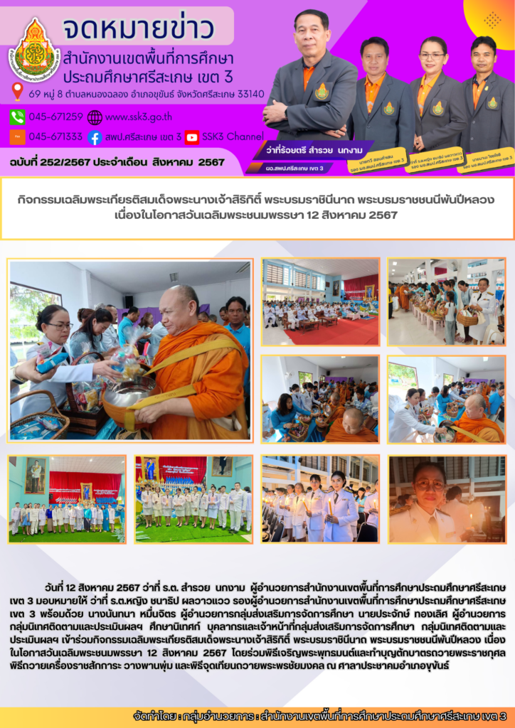 กิจกรรมเฉลิมพระเกียรติสมเด็จพระนางเจ้าสิริกิติ์ พระบรมราชินีนาถ พระบรมราชชนนีพันปีหลวง เนื่องในโอกาสวันเฉลิมพระชนมพรรษา 12 สิงหาคม 2567 สิงหาคม 13, 2024 Last updated : สิงหาคม 13, 2024 Chananthita จำนวนคนดู : 55