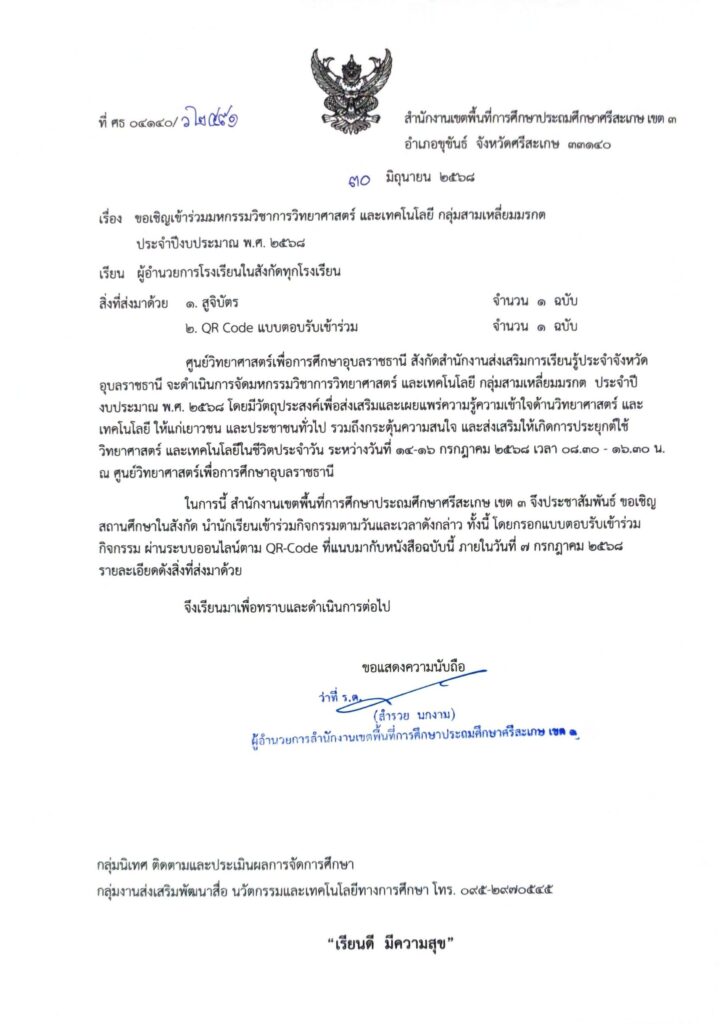 ขอเชิญเข้าร่วมมหกรรมวิชาการวิทยาศาสตร์ และเทคโนโลยี กลุ่มสามเหลี่ยมมรกต กรกฎาคม 1, 2025 Last updated : กรกฎาคม 1, 2025 nitad แจ้งทุกโรงเรียนในสังกัด คลิ๊กหนังสือที่ ว2491 จำนวนคนดู : 25