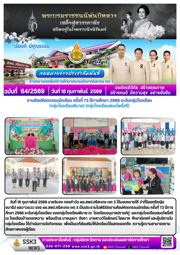 งานศิลปหัตถกรรมนักเรียน ครั้งที่ 73 ปีการศึกษา 2568 ระดับกลุ่มโรงเรียน (กลุ่มโรงเรียนพิมาย) (กลุ่มโรงเรียนสมอโพธิ์ศรี) กุมภาพันธ์ 18, 2026 Last updated : กุมภาพันธ์ 19, 2026 nitad จำนวนคนดู : 878