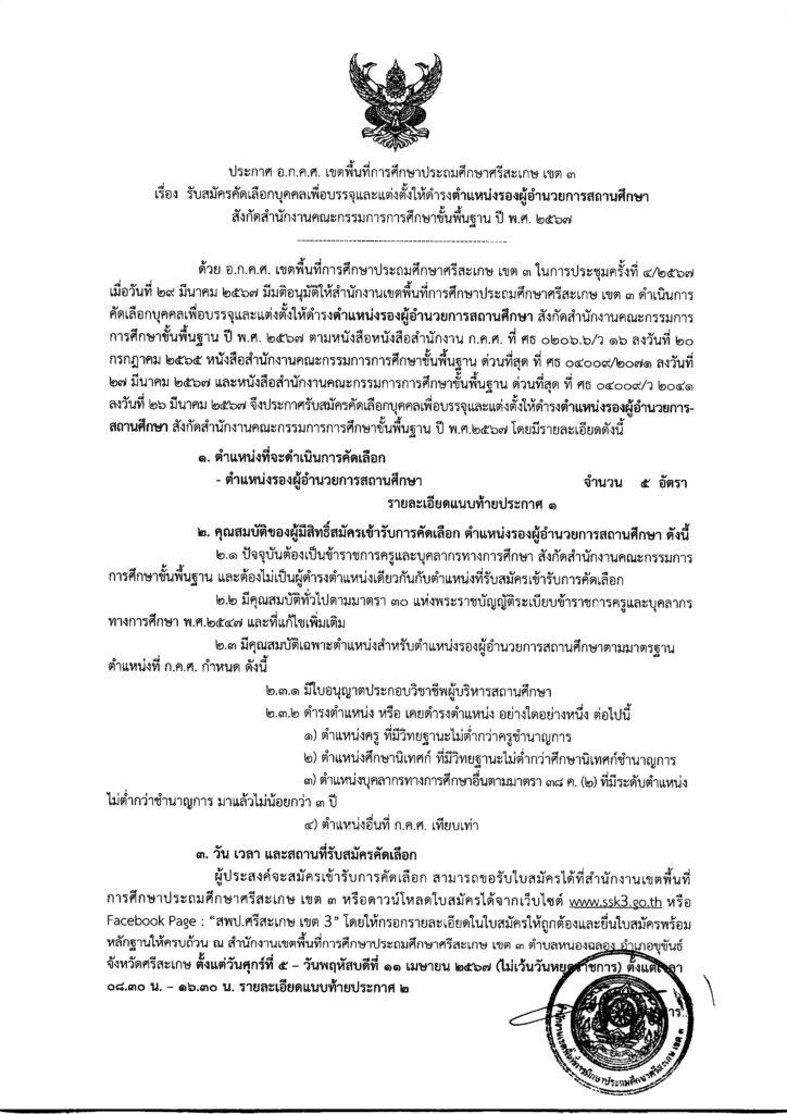 ประกาศรับสมัครคัดเลือกบุคคลเพื่อบรรจุและแต่งตั้งให้ดำรงตำแหน่งรองผู้อำนวยการสถานศึกษา สังกัดสำนักงานคณะกรรมการการศึกษาขั้นพื้นฐาน ปี พ.ศ. 2567 มีนาคม 29, 2024 Last updated : เมษายน 4, 2024 Chananthita รายละเอียดเพิ่มเติม จำนวนคนดู : 484