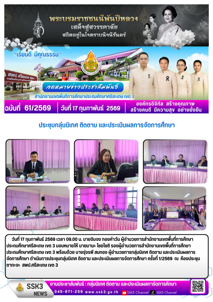 ประชุมกลุ่มนิเทศ ติดตาม และประเมินผลการจัดการศึกษา ครั้งที่ 1/2569 กุมภาพันธ์ 18, 2026 Last updated : กุมภาพันธ์ 19, 2026 nitad จำนวนคนดู : 23