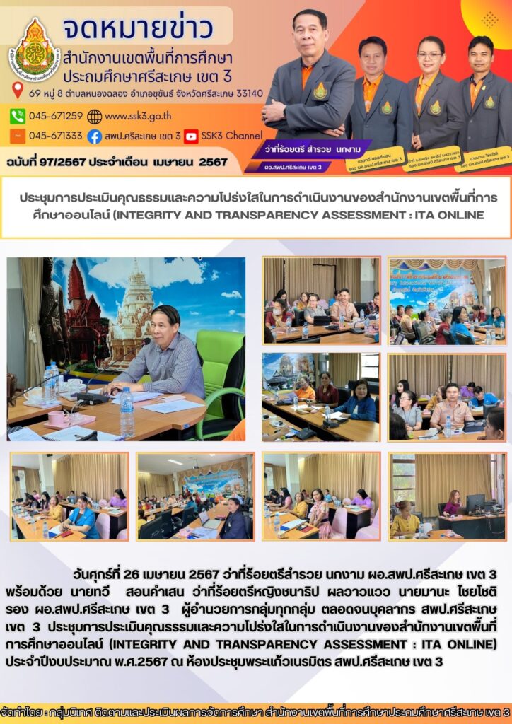 ประชุมการประเมินคุณธรรมและความโปร่งใสในการดำเนินงานของสำนักงานเขตพื้นที่การศึกษาออนไลน์ (Integrity and Transparency Assessment : ITA Online เมษายน 30, 2024 Last updated : เมษายน 30, 2024 Chananthita จำนวนคนดู : 35