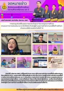 วันศุกร์ที่ 2 สิงหาคม 2567 ว่าที่ร้อยตรี สำรวย นกงาม ผู้อำนวยการสำนักงานเขตพื้นที่การศึกษาประถมศึกษาศรีสะเกษ เขต 3 มอบหมายให้ ว่าที่ร้อยตรีหญิง ชนาธิป ผลวาวแวว รองผู้อำนวยการสำนักงานเขตพื้นที่การศึกษาประถมศึกษาศรีสะเกษ เขต 3 พร้อมด้วย นายประจักษ์ ทองเลิศ ผู้อำนวยการกลุ่มนิเทศติดตามและประเมินผลการจัดการศึกษา นางสาววิไลลักษณ์ ไชยมาศ ศึกษานิเทศก์ ผู้รับผิดชอบ และศึกษานิเทศก์ในสังกัด เข้าร่วมประชุมขับเคลื่อนแผนการยกระดับคุณภาพมาตรฐานการศึกษาตามแนวทางการประเมินนานาชาติ (PISA) สำหรับผู้อำนวยการสำนักงานเขตพื้นที่การศึกษา ผ่านระบบอิเล็กทรอนิกส์ (ครั้งที่ 11)