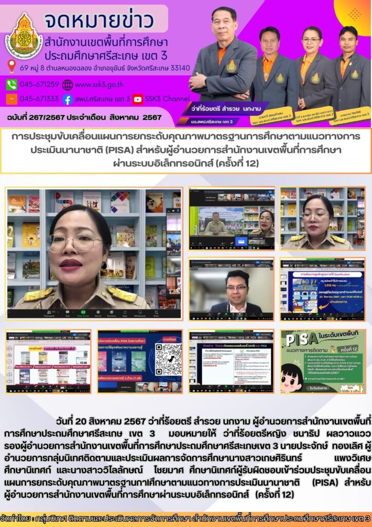 ประชุมขับเคลื่อนแผนการยกระดับคุณภาพมาตรฐานการศึกษาตามแนวทางการประเมินนานาชาติ (PISA) สำหรับผู้อำนวยการสำนักงานเขตพื้นที่การศึกษา ผ่านระบบอิเล็กทรอนิกส์ (ครั้งที่ 12) สิงหาคม 26, 2024 Last updated : สิงหาคม 26, 2024 Chananthita จำนวนคนดู : 63