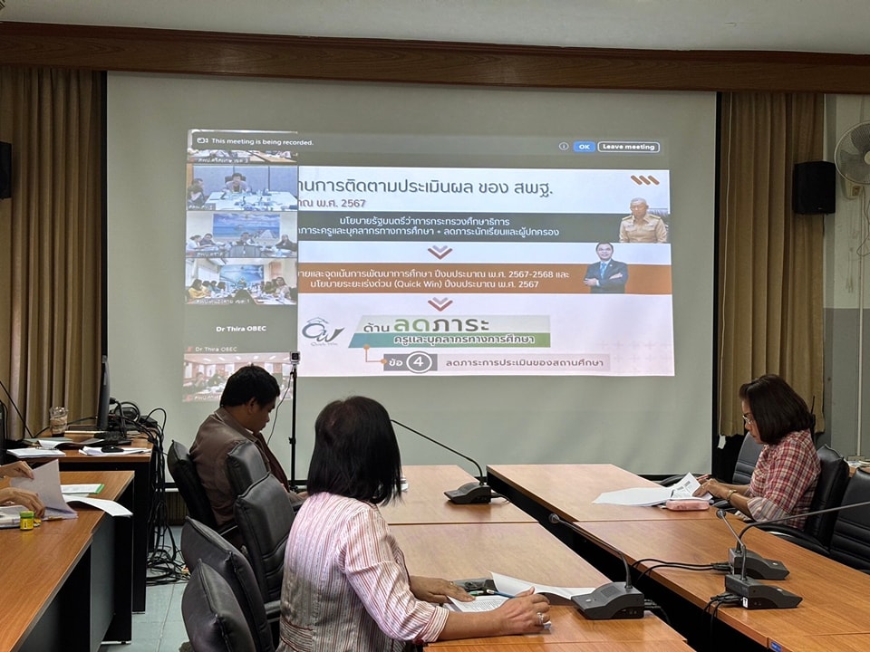 ประชุมทางไกลผ่านระบบ ZOOM เพื่อทดสอบเครื่องมือการติดตาม ประเมินผลการบริหารและการจัดการศึกษาขั้นพื้นฐานของสำนักงานคณะกรรมการการศึกษาขั้นพื้นฐาน ประจำปีงบประมาณ พ.ศ. 2567