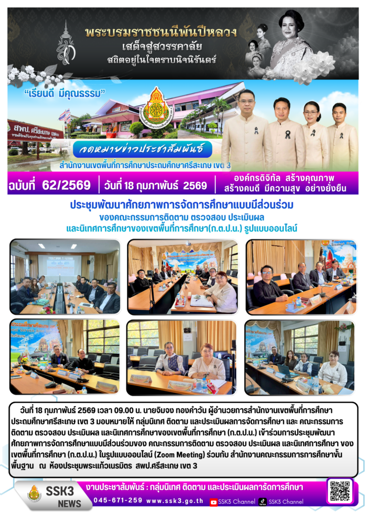 ประชุมพัฒนาศักยภาพการจัดการศึกษาแบบมีส่วนร่วม ของคณะกรรมการติดตาม ตรวจสอบ ประเมินผล และนิเทศการศึกษาของเขตพื้นที่การศึกษา(ก.ต.ป.น.) รูปแบบออนไลน์ กุมภาพันธ์ 18, 2026 Last updated : กุมภาพันธ์ 19, 2026 nitad จำนวนคนดู : 14