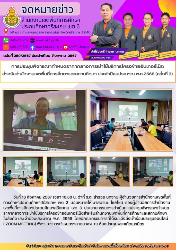 ประชุมพิจารณากำหนดราคากลางการเช่าใช้บริการโครงข่ายอินเทอร์เน็ตสำหรับสำนักงานเขตพื้นที่การศึกษาและสถานศึกษาในสังกัด ประจำปีงบประมาณ พ.ศ. 2568 (ครั้งที่ 3) สิงหาคม 16, 2024 Last updated : สิงหาคม 16, 2024 Chananthita จำนวนคนดู : 36