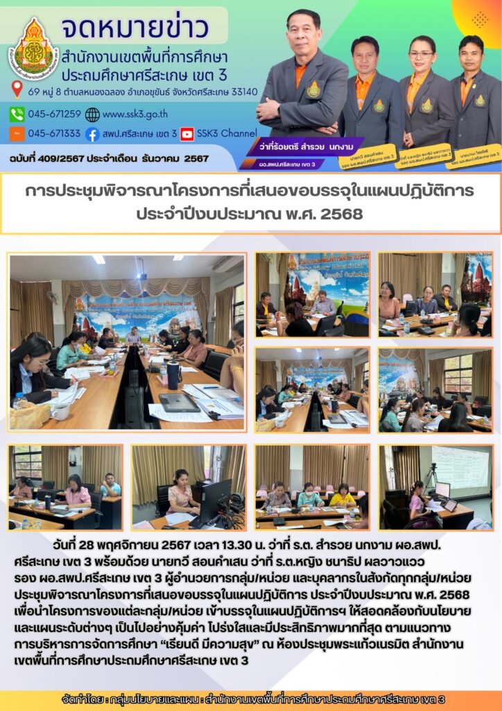 ประชุมพิจารณาโครงการที่เสนอขอบรรจุในแผนปฏิบัติการ ประจำปีงบประมาณ พ.ศ. 2568 ธันวาคม 3, 2024 Last updated : ธันวาคม 3, 2024 Chananthita จำนวนคนดู : 27