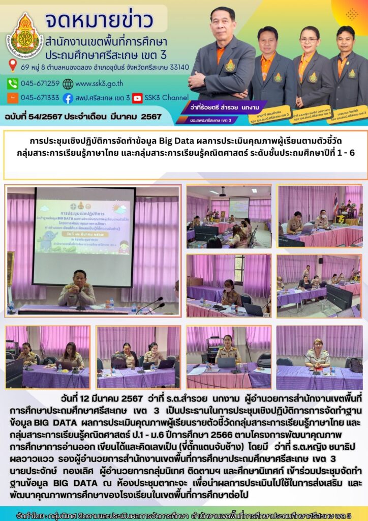 ประชุมเชิงปฏิบัติการจัดทำข้อมูล Big Dataผลการประเมินคุณภาพผู้เรียน ตามตัวชี้วัด กลุ่มสาระการเรียนรู้ภาษาไทย และกลุ่มสาระการเรียนรู้คณิตศาสตร์ ระดับชั้น ประถมศึกษาปีที่ 1 - 6 มีนาคม 18, 2024 Last updated : มีนาคม 18, 2024 Chananthita จำนวนคนดู : 90