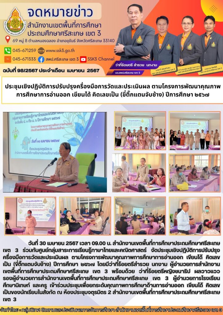 ประชุมเชิงปฏิบัติการปรับปรุงครื่องมือการวัดและประเมินเล ตามโครงการพัฒนาคุณภาพการศึกษาการอ่านออก เขียนได้ คิดเลขเป็น (ขี่ติ๊กแตนจับช้าง) ปีการศึกษา 2567
