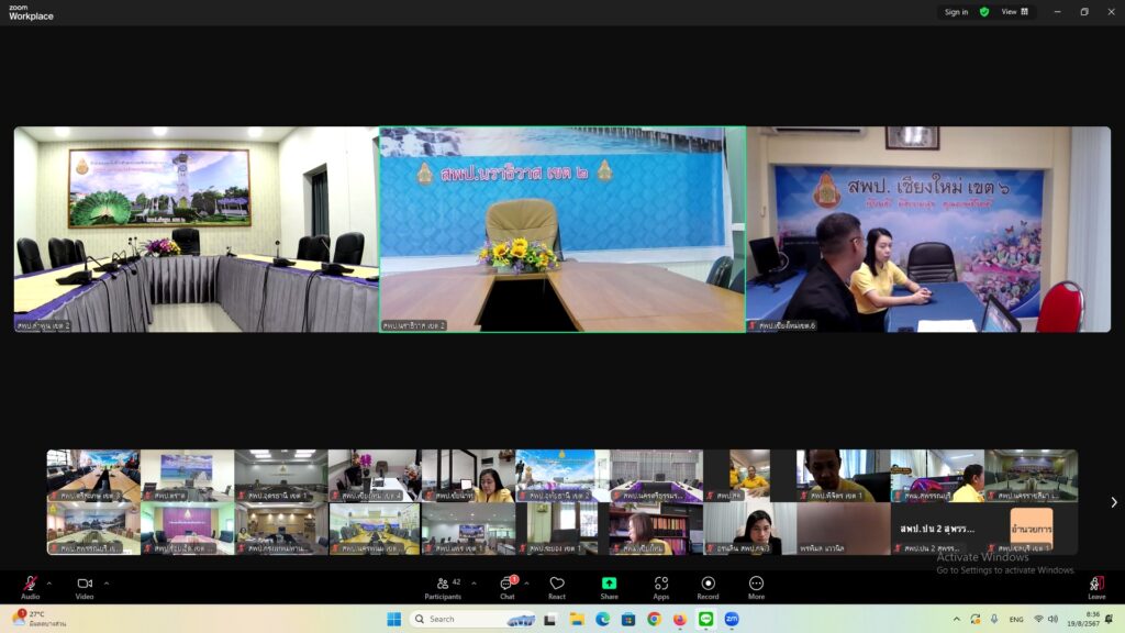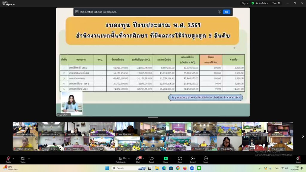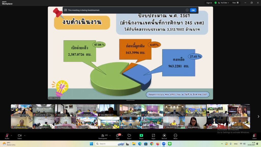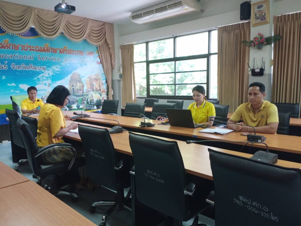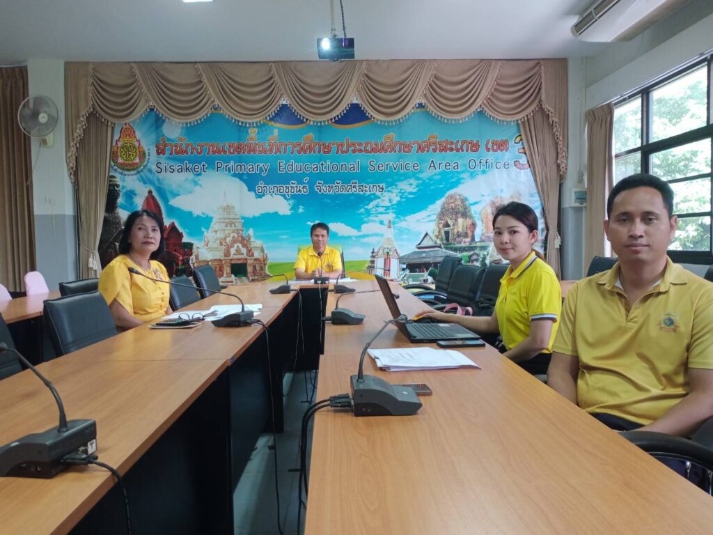 วันที่ 19 สิงหาคม 2567 เวลา 09.00 น. ว่าที่ ร.ต. สำรวย นกงาม ผู้อำนวยการสำนักงานเขตพื้นที่การศึกษาประถมศึกษาศรีสะเกษเขต 3 มอบหมายให้ นายทวี สอนคำเสน รองผู้อำนวยการสำนักงานเขตพื้นที่การศึกษาประถมศึกษาศรีสะเกษเขต 3 พร้อมด้วย นางสาวเยาวลักษณ์ ประวาฬ ผู้อำนวยการกลุ่มบริหารงานการเงินและสินทรัพย์ และเจ้าหน้าที่กลุ่มบริหารงานการเงินและสินทรัพย์ เข้าร่วมการประชุมเชิงปฏิบัติการสรุปผลการดำเนินงานและเร่งรัดการเบิกจ่ายงบประมาณปี พ.ศ 2567 และเตรียมความพร้อมในบทบาทหน้าที่ผู้อำนวยการกลุ่มบริหารงานการเงินและสินทรัพย์ เพื่อรองรับงบประมาณปี พ.ศ 2568 ผ่านระบบ Zoom Meeting ณ ห้องพระแก้วเนรมิตร