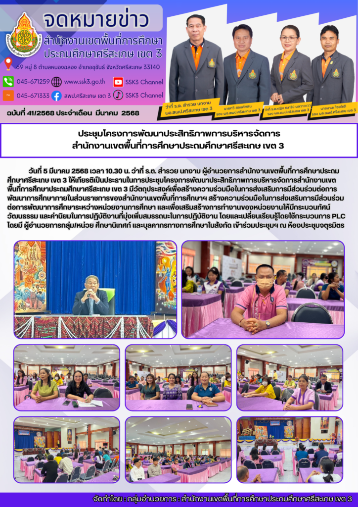 ประชุมโครงการพัฒนาประสิทธิภาพการบริหารจัดการสำนักงานเขตพื้นที่การศึกษาประถมศึกษาศรีสะเกษ เขต 3 มีนาคม 5, 2025 Last updated : มีนาคม 5, 2025 Chananthita จำนวนคนดู : 20