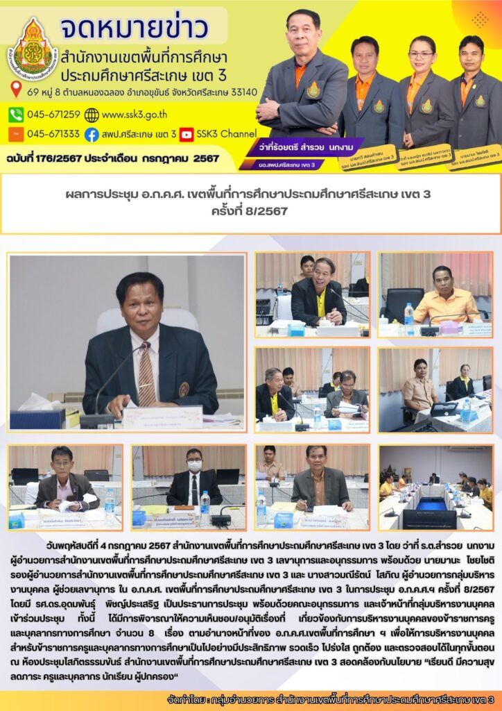 ประชุม อ.ก.ค.ศ. เขตพื้นที่การศึกษาประถมศึกษาศรีสะเกษ เขต 3 ครั้งที่ 8/2567 กรกฎาคม 4, 2024 Last updated : กรกฎาคม 4, 2024 Chananthita จำนวนคนดู : 78