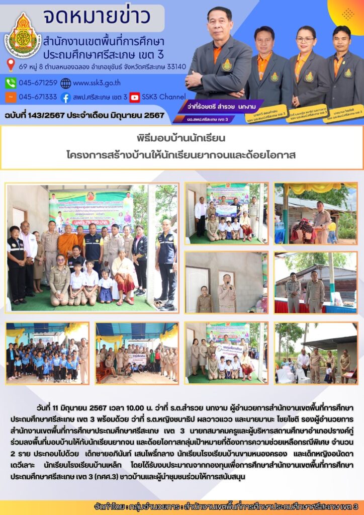 พิธีมอบบ้านนักเรียน โครงการสร้างบ้านให้นักเรียนยากจนและด้อยโอกาส บ้านขามหนองครอง บ้านเหล็ก มิถุนายน 20, 2024 Last updated : มิถุนายน 20, 2024 Chananthita จำนวนคนดู : 35