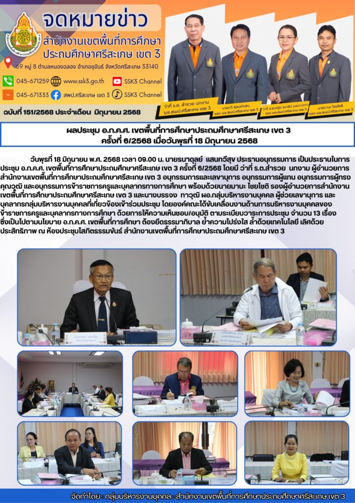 ผลประชุม อ.ก.ค.ศ. เขตพื้นที่การศึกษาประถมศึกษาศรีสะเกษ เขต 3 ครั้งที่ 6/2568 เมื่อวันพุธที่ 18 มิถุนายน 2568 มิถุนายน 19, 2025 Last updated : มิถุนายน 19, 2025 Chananthita จำนวนคนดู : 41