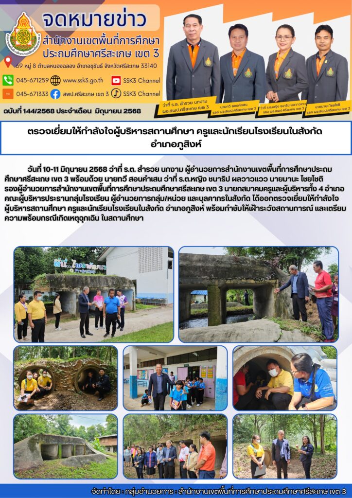 ผอ.สพป.ศก.3 ลุยภูสิงห์! ให้กำลังใจครู-นร. ย้ำเฝ้าระวังภัย กำชับเตรียมพร้อมรับมือเหตุฉุกเฉินในโรงเรียน มิถุนายน 13, 2025 Last updated : มิถุนายน 13, 2025 Chananthita จำนวนคนดู : 56