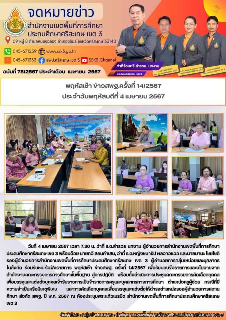 พฤหัสเช้า ข่าวสพฐ.ครั้งที่ 14/2567 ประจำวันพฤหัสบดีที่ 4 เมษายน 2567 เมษายน 24, 2024 Last updated : เมษายน 24, 2024 Chananthita จำนวนคนดู : 26