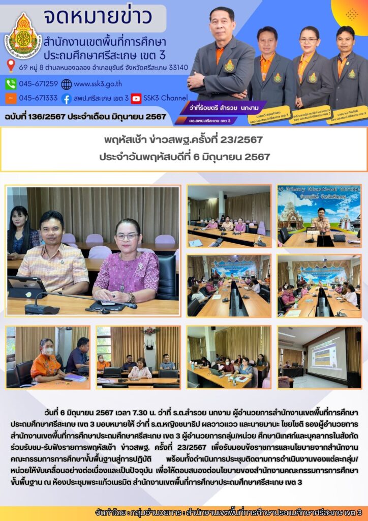 พฤหัสเช้า ข่าวสพฐ.ครั้งที่ 23/2567 ประจำวันพฤหัสบดีที่ 6 มิถุนายน 2567 มิถุนายน 20, 2024 Last updated : มิถุนายน 20, 2024 Chananthita จำนวนคนดู : 21