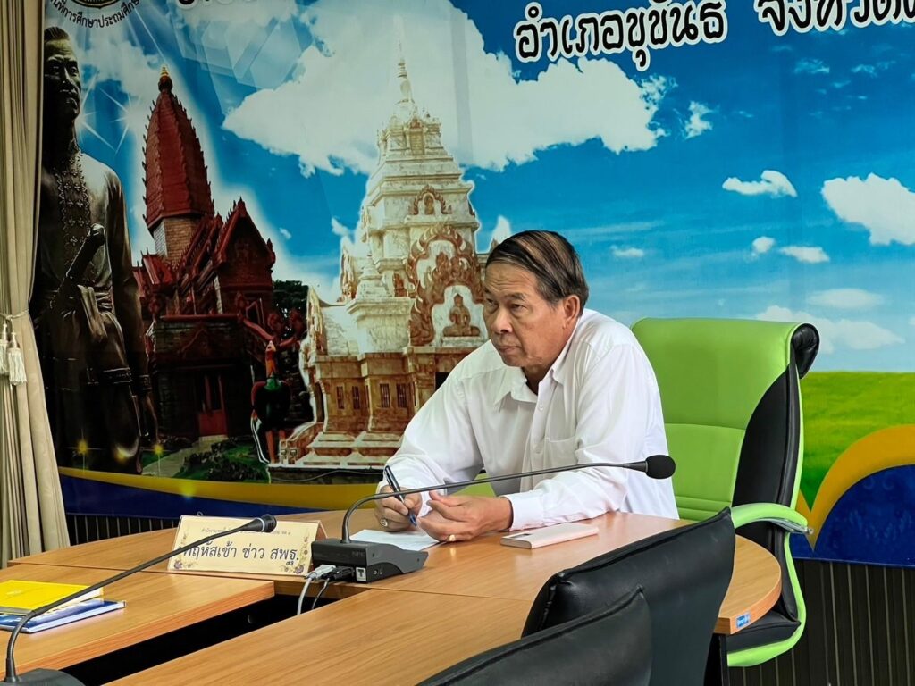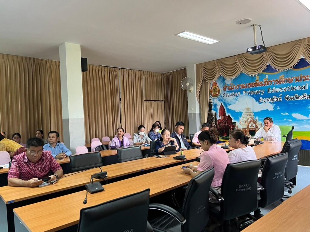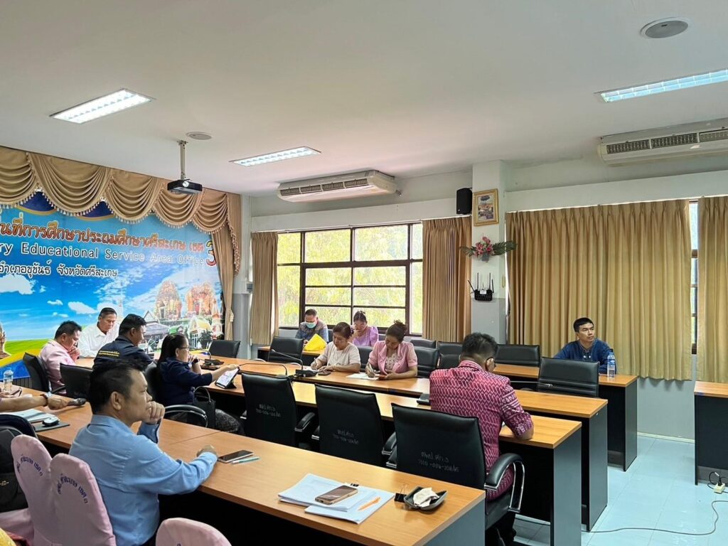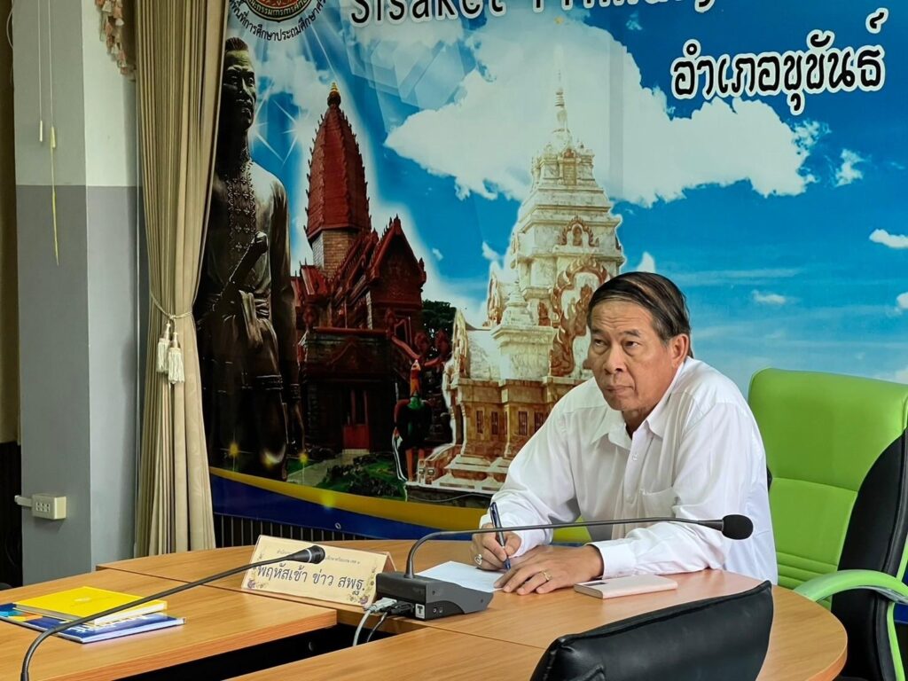 วันที่ 2 พฤษภาคม 2567 เวลา 7.30 น. ว่าที่ ร.ต.สำรวย นกงาม ผู้อำนวยการสำนักงานเขตพื้นที่การศึกษาประถมศึกษาศรีสะเกษ เขต 3 พร้อมด้วย นายทวี สอนคำเสน, ว่าที่ ร.ต.หญิงชนาธิป ผลวาวแวว และนายมานะ ไชยโชติ รองผู้อำนวยการสำนักงานเขตพื้นที่การศึกษาประถมศึกษาศรีสะเกษ เขต 3 ผู้อำนวยการกลุ่ม/หน่วย ศึกษานิเทศก์และบุคลากรในสังกัด ร่วมรับชม-รับฟังรายการ พฤหัสเช้า ข่าวสพฐ. ครั้งที่ 18/2567 เพื่อรับมอบข้อราชการและนโยบายจากสำนักงานคณะกรรมการการศึกษาขั้นพื้นฐานสู่การปฏิบัติ การพัฒนาทักษะอาชีพสู่อนาคต ณ ห้องประชุมพระแก้วเนรมิต สำนักงานเขตพื้นที่การศึกษาประถมศึกษาศรีสะเกษ เขต 3