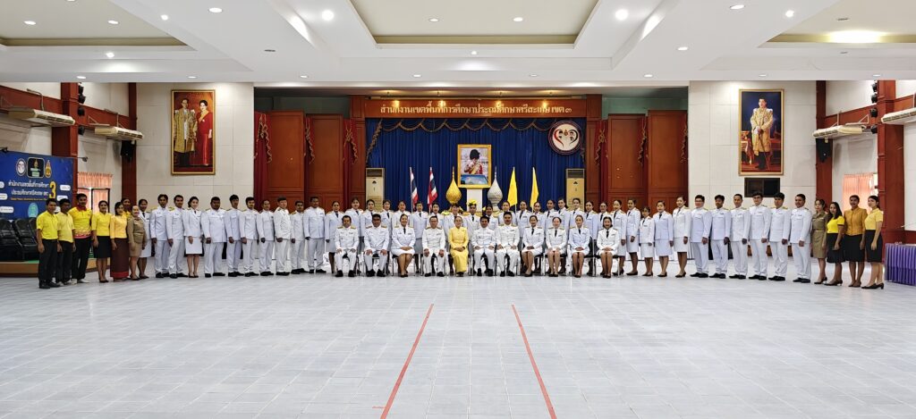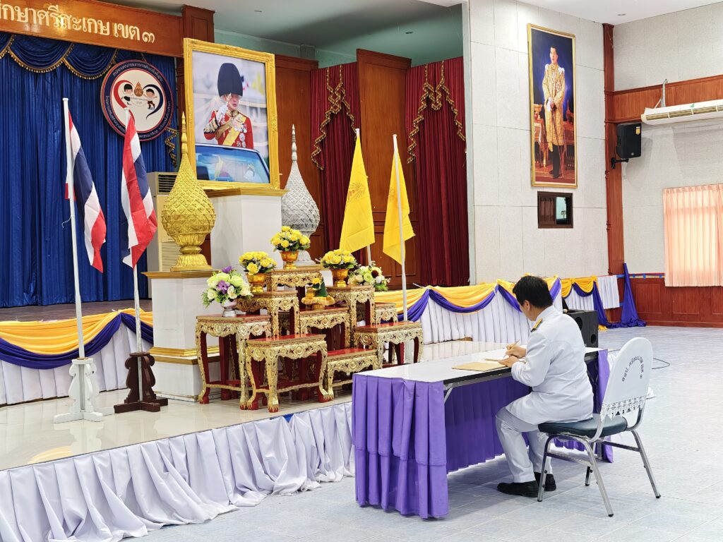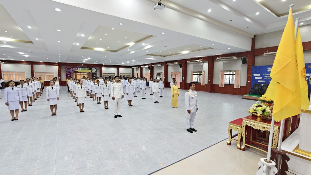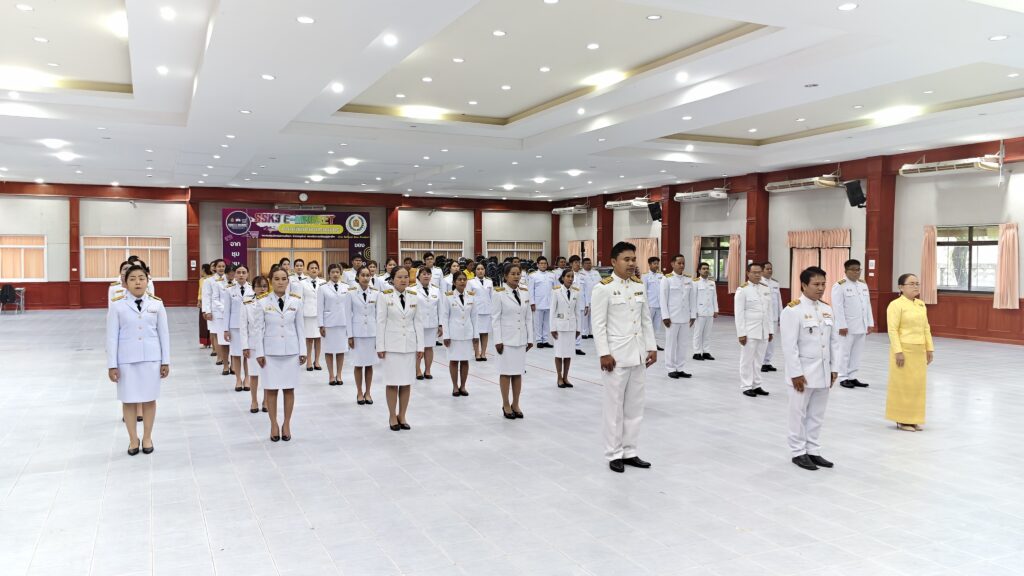 วันที่ 24 กรกฎาคม 2568 เวลา 09.00 น. ว่าที่ ร.ต.สำรวย นกงาม ผู้อำนวยการสำนักงานเขตพื้นที่การศึกษาประถมศึกษาศรีสะเกษ เขต 3 มอบหมายให้ นายทวี สอนคำเสน พร้อมด้วย ว่าที่ ร.ต.หญิง ชนาธิป ผลวาวแวว นายมานะ ไชยโชติ รองผู้อำนวยการสำนักงานเขตพื้นที่การศึกษาประถมศึกษาศรีสะเกษ เขต 3 ผู้อำนวยการกลุ่ม/หน่วย ศึกษานิเทศก์ พนักงานราชการ ลูกจ้างและบุคลากรในสังกัด ร่วมพิธีถวายสัตย์ปฏิญาณเพื่อเป็นข้าราชการที่ดีและเป็นพลังของแผ่นดิน เนื่องในโอกาสวันเฉลิมพระชนมพรรษา พระบาทสมเด็จพระปรเมนทรรามาธิบดีศรีสินทรมหาวชิราลงกรณ พระวชิรเกล้าเจ้าอยู่หัว 28 กรกฎาคม 2568 เพื่อแสดงความมุ่งมั่นแน่วแน่ที่จะเป็นข้าราชการที่ดีและพลังของแผ่นดิน ปฏิบัติหน้าที่ตามรอยพระยุคลบาทในฐานะข้าของแผ่นดินให้เกิดประโยชน์สุขแก่ประชาชนและประเทศชาติสืบไป ณ ห้องประชุมจตุรมิตร สำนักงานเขตพื้นที่การศึกษาประถมศึกษาศรีสะเกษ เขต 3