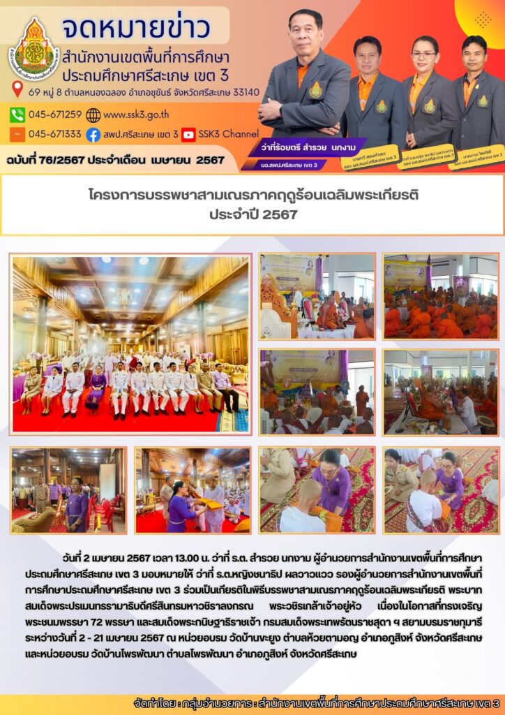 พิธีบรรพชาสามเณรภาคฤดูร้อนเฉลิมพระเกียรติ พระบาทสมเด็จพระปรเมนทรรามาธิบดีศรีสินทรมหาวชิราลงกรณ พระวชิรเกล้าเจ้าอยู่หัว เนื่องในโอกาสที่ทรงเจริญพระชนมพรรษา 72 พรรษา และสมเด็จพระกนิษฐาธิราชเจ้า กรมสมเด็จพระเทพรัตนราชสุดา ฯ สยามบรมราชกุมารี เมษายน 3, 2024 Last updated : เมษายน 3, 2024 Chananthita จำนวนคนดู : 24